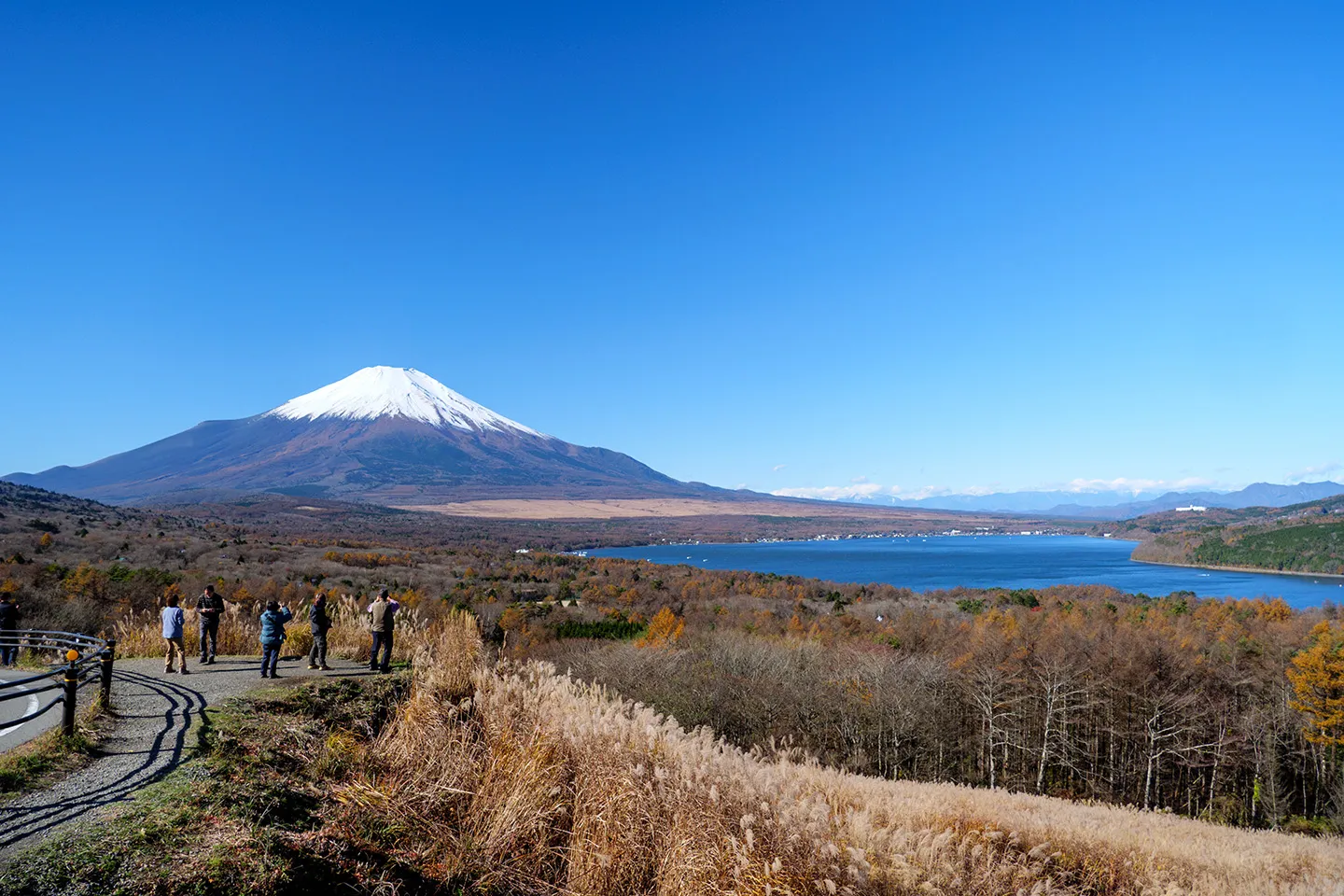 • Postcard-perfect angle of Lake Yamanaka and Mt. Fuji in one frame.